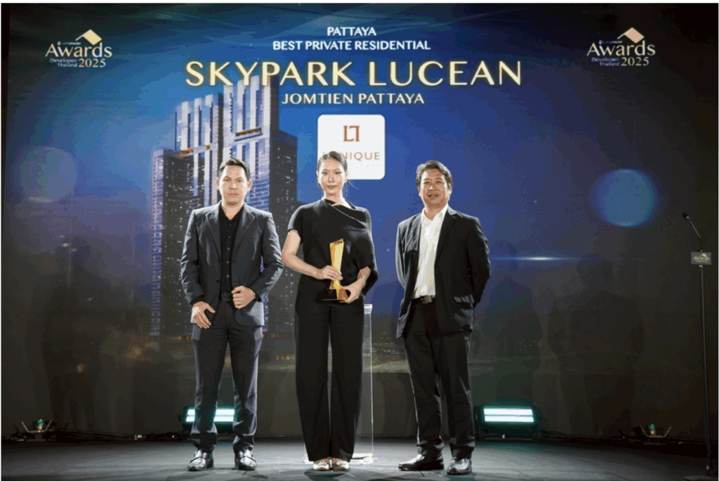 บริษัท ลูนิค เรียลเอสเตท จำกัด ผู้พัฒนาอสังหาริมทรัพย์ระดับลักชัวรีชั้นนำที่มุ่งตอบโจทย์ไลฟ์สไตล์คนรุ่นใหม่ ประกาศความภาคภูมิใจครั้งสำคัญหลังโครงการ Skypark Lucean Jomtien Pattaya (สกายพาร์ค ลูเชี่ยน จอมเทียนพัทยา) คอนโดมิเนียมสุดหรู Branded Residence แห่งแรกของบันยันกรุ๊ปในพัทยาได้กวาด 3 รางวัลใหญ่จาก 2 เวทีชั้นนำ ได้แก่ เวที LivingInsider Thailand Developer Awards 2025 ในสาขา Best Private Residential Awards (Condo) และสาขา Best High Value Investment Awards (Major Cities) และเวที Dot Property Thailand Awards 2025 ในสาขา Best Condominium Branded Residence Thailand โดยทั้งสองเวทีอันทรงเกียรติเป็นสุดยอดงานประกาศรางวัลชั้นนำที่ยกย่องโครงการที่เป็นเลิศซึ่งตอบโจทย์ทั้งการอยู่อาศัยและการลงทุน สะท้อนมาตรฐานการพัฒนาโครงการอันยอดเยี่ยมของ Skypark Lucean Jomtien Pattaya ที่พร้อมเดินหน้าสู่การเป็นแลนด์มาร์กแห่งใหม่ของหาดจอมเทียน
