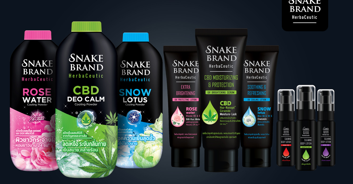 กลุ่มบริษัทอังกฤษตรางู ผู้นำด้านผลิตภัณฑ์สุขภาพและความงามมายาวนานกว่า 130 ปี เปิดตัวกลุ่มผลิตภัณฑ์ใหม่ “สเนคแบรนด์ เฮอร์บาซูติค” (Snake Brand HerbaCeutic) โดยออก 3 ผลิตภัณฑ์ใหม่ ได้แก่ สเนคแบรนด์ เฮอร์บาซูติค บอดี้ โลชั่น (Snake Brand HerbaCeutic Body Lotion) สเนค แบรนด์ เฮอร์บาซูติค แป้งเย็น (Snake Brand HerbaCeutic Cooling Powder) และ สเนคแบรนด์ เฮอร์บาซูติค ซีบีดี คาล์มมิ่ง โลชั่น (Snake Brand HerbaCeutic CBD Calming Lotion) ที่คัดสรรส่วนผสมสารสกัดจากสมุนไพรธรรมชาติเกรดพรีเมี่ยม พร้อมด้วยนวัตกรรมและเทคโนโลยีใหม่ในการวิจัยและพัฒนาผลิตภัณฑ์ โดยผ่านการทดสอบการไม่ระคายเคืองผิวจากสถาบันผู้เชี่ยวชาญด้านผิวหนัง เพื่อดูแลและบำรุงผิวกายให้มีสุขภาพดี เสริมเกราะป้องกันผิวจากมลภาวะ ฟื้นฟูผิวล็อคความชุ่มชื้นยาวนาน ให้กลิ่นหอมสดชื่น ผ่อนคลายสบายผิวตลอดวัน จับกลุ่มคนรุ่นใหม่ที่มีไลฟ์สไตล์กระฉับกระเฉง สนุกกับการใช้ชีวิต รักธรรมชาติ และดูแลใส่ใจสุขภาพ พร้อมชูกลยุทธ์ 360’ มาร์เก็ตติ้ง ปล่อยภาพยนตร์โฆษณาทางโทรทัศน์ จัดอีเวนต์ใหญ่เปิดตัวใจกลางเมือง พร้อมอัดแน่นจัดเต็มกับแคมเปญออนไลน์-ออฟไลน์ตลอดปี