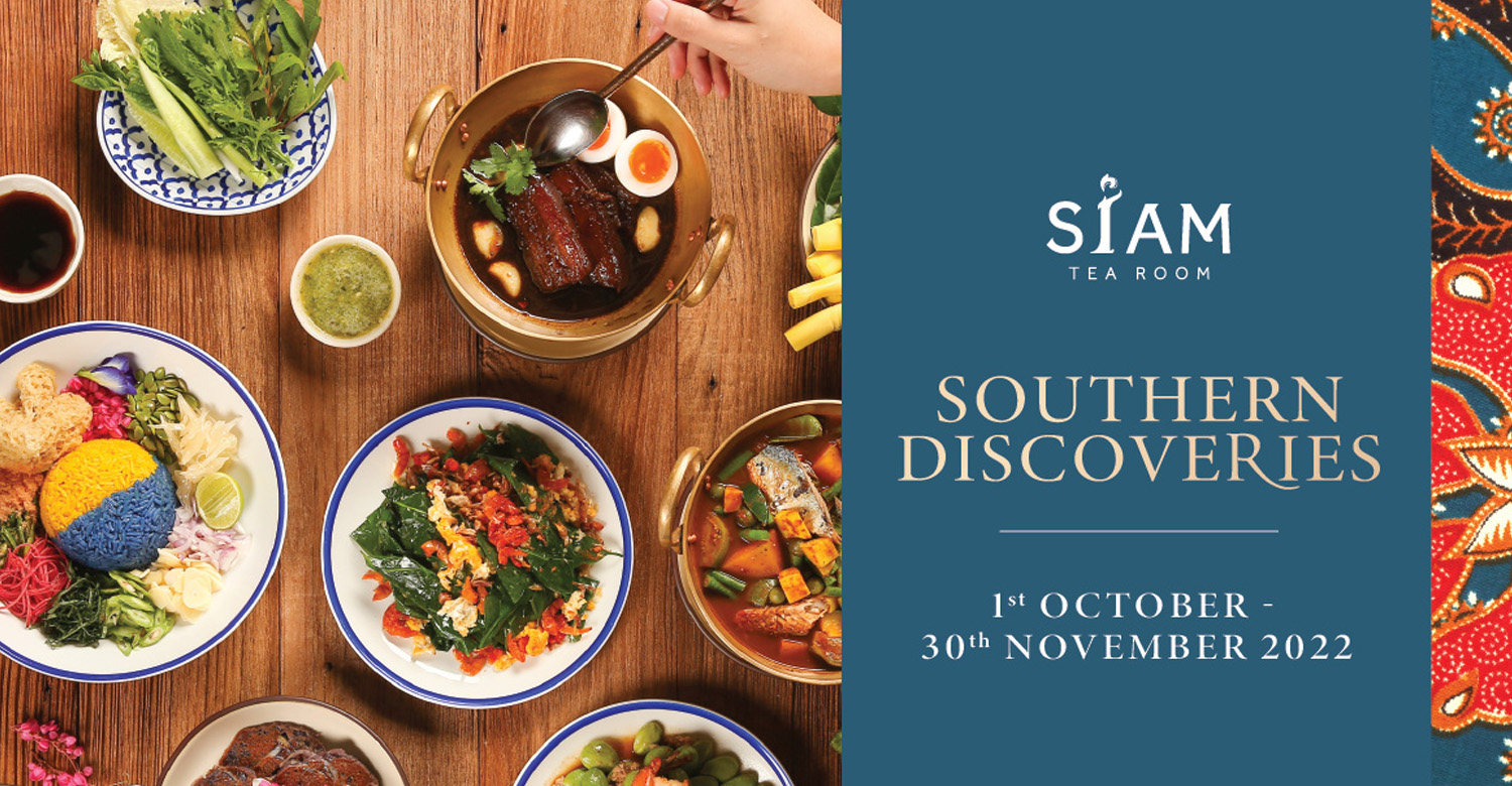 ลิ้มลองเมนูอาหารปักษ์ใต้กับโปรโมชั่น ‘Southern Discoveries’ สุดเอ็กซ์คลูซีฟนี้ได้ตั้งแต่วันที่ 1 ตุลาคม–30 พฤศจิกายน 2565 ทั้งมื้อกลางวันและมื้อเย็น ห้องอาหารสยาม ที รูม เปิดให้บริการทุกวัน เวลา 08.00 – 22.00 น. ราคาเริ่มต้นที่ 150++ บาทต่อจาน