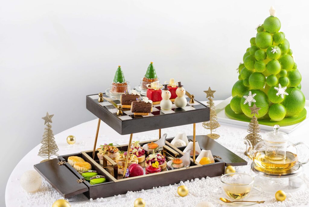 เดอะ เบเกอรี่ (The Bakery) และ คาเฟ่ เดอ เพทาย (Cafe de Petal) เติมเต็มบรรยากาศด้วย Festive Afternoon Tea โดยในเซ็ตประกอบด้วยเมนูของว่างและคาวสุดประณีต อาทิ หอยเชลล์ฮอกไกโด แซลมอนรมควัน และ ดั๊กริแยตต์ ส่วนเมนูของหวาน มีให้เลือกทั้งพุดดิ้งต้นคริสต์มาส เชอร์รี่ยูล็อก บาบาโอรัม และสโคนผลไม้