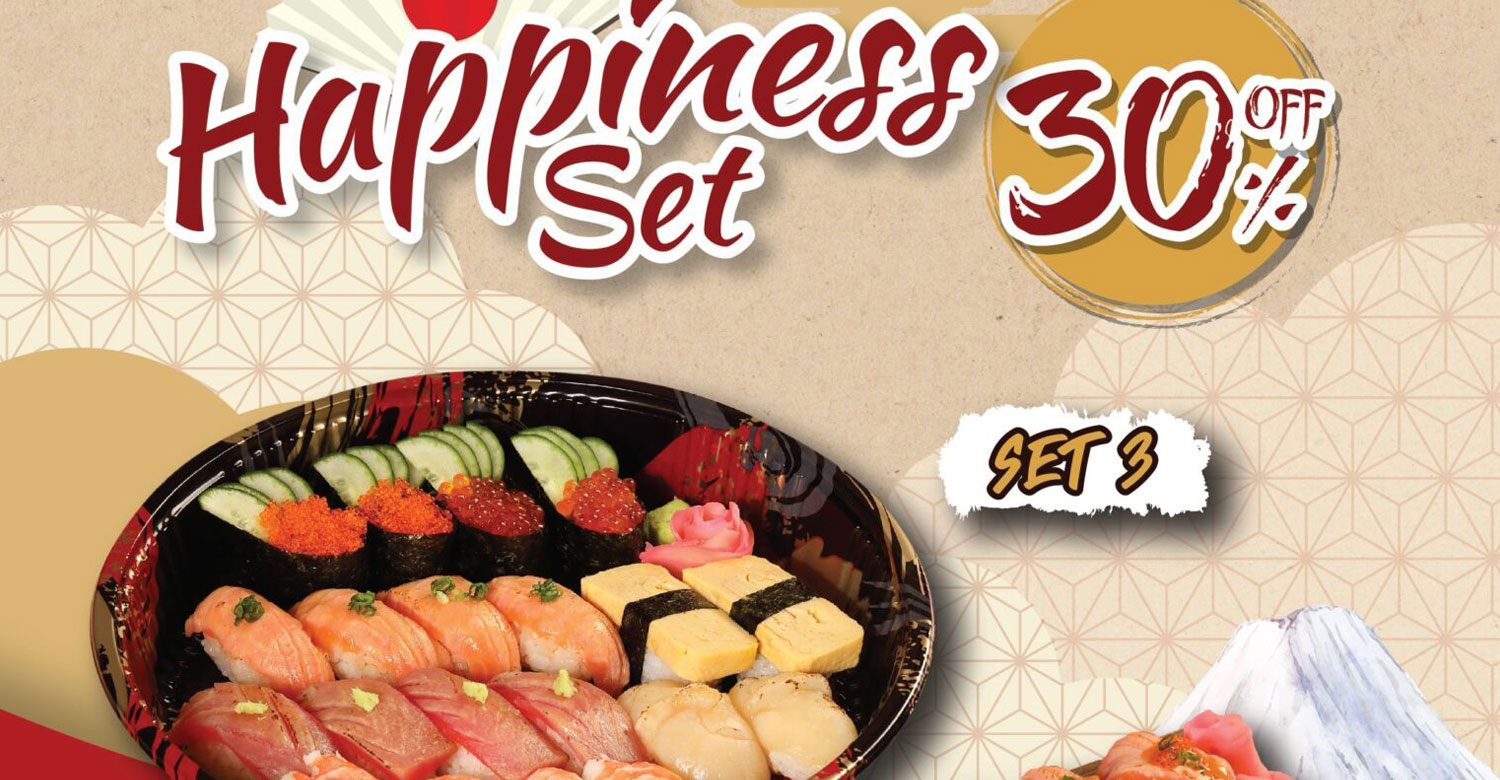 เซต 3: ปาร์ตี้ซูชิสไตล์ฮอกไกโด – จัดเต็มความสดใหม่กับ ซูชิอาบูริรวม 7 หน้ายอดนิยม ทั้งไข่หวาน กุ้ง แซลมอน มากูโร่ หอยเชลล์โฮตาเตะ และไข่กุ้ง ไข่ปลาแซลมอน พร้อมด้วยเมนูขายดีอย่าง ไข่กุ้งแซลมอนอาบูริโรล โรลแซลมอนอัดแน่น สอดไส้ไข่หวาน ท็อปด้วยไข่กุ้งและเกล็ดเทมปุระกรุบกรอบ ในราคาพิเศษ 1,039 บาท เหมาะสำหรับแบ่งปันความอร่อยกับเพื่อนและครอบครัว!