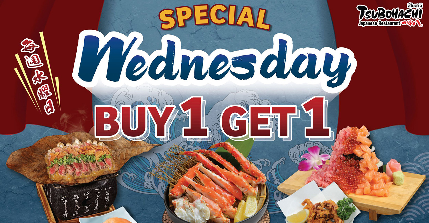 ร้านอาหารญี่ปุ่น “สึโบฮาจิ” ต้นตำรับอันดับ 1 อาหารญี่ปุ่นสไตล์ฮอกไกโด ให้คุณจัดเต็มความอร่อยกับ 3 เซตอาหารสุดคุ้ม ในราคาเพียงเซตละ 269 – 2,299 บาท กับโปรโมชัน “Special Wednesday Buy 1 Get 1” ตั้งแต่วันนี้ –25 กันยายนศกนี้ (หรือจนกว่าจะมีการแจ้งเปลี่ยนแปลง)ที่ร้านอาหารญี่ปุ่น “สึโบฮาจิ” ทุกสาขา