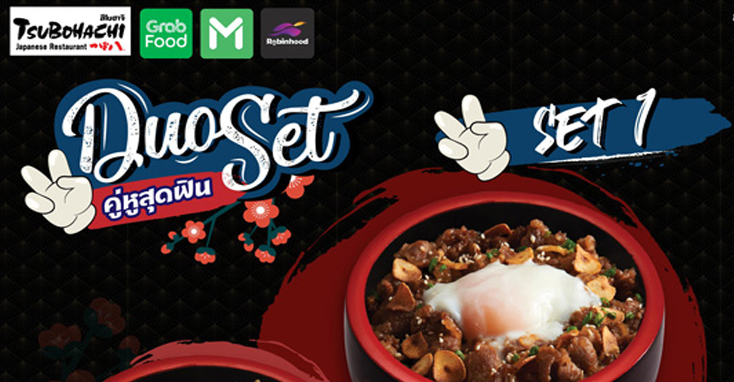 ร้านอาหารญี่ปุ่น “สึโบฮาจิ” ความอร่อยต้นตำรับจากฮอกไกโดที่มีกว่า 300 สาขาทั่วประเทศญี่ปุ่น และ 6 สาขาในประเทศไทย พิถีพิถันคัดสรรวัตถุดิบชั้นดีมารังสรรค์เมนูอร่อยกว่า 200 เมนู ขอมอบโปรโมชั่นสุดคุ้ม Duo Set ให้คุณอิ่มอร่อยทันใจด้วยบริการเดลิเวอรี่ ในราคาเริ่มต้น 259 – 379 บาท สำหรับการสั่งผ่านแอปพลิเคชันสั่งอาหารชั้นนำ ไลน์แมน แกร็บฟู้ด และโรบินฮู้ด เท่านั้น ตั้งแต่วันนี้ – 31 มีนาคมศกนี้(หรือจนกว่าจะมีการแจ้งเปลี่ยนแปลง) ที่ “สึโบฮาจิ” ทุกสาขา (ยกเว้นสาขาเดอะ พอร์ทอล)