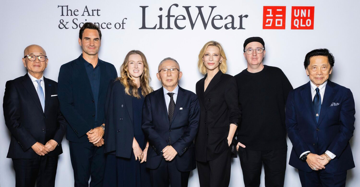 (ในภาพจากซ้าย) มร. มิสึโอะ โอยะ ประธานบริษัท โทเรย์ อินดัสทรีส์, โรเจอร์ เฟเดอเรอร์, แคลร์ เวท เคลเลอร์, มร. ทาดาชิ ยาไน ผู้ก่อตั้งยูนิโคล่และประธานกรรมการ ซีอีโอของฟาสต์ รีเทลลิ่ง, เคท แบลนเชตต์, KAWS และ จอห์น ซี เจย์ ประธานฝ่าย Global Creative บริษัท ฟาสต์ รีเทลลิ่ง จำกัด