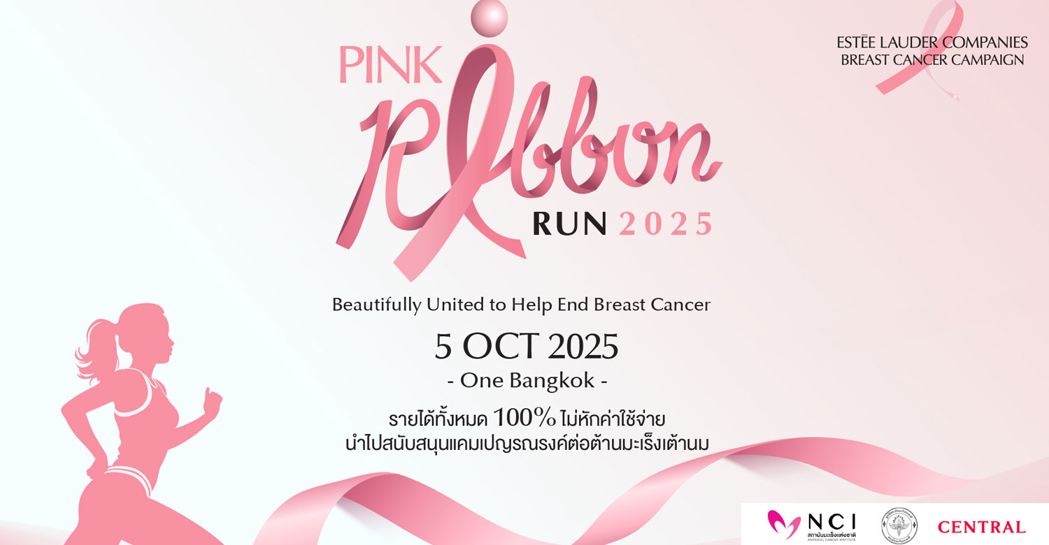 กลับมาอีกครั้งกับงานวิ่งการกุศลครั้งยิ่งใหญ่แห่งปีที่ไม่ควรพลาด “Pink Ribbon Run 2025” โดยเอสเต ลอเดอร์ คอมพานีส์ประเทศไทย ภายใต้บริษัท เอลก้า (ประเทศไทย) จำกัด บริษัทชั้นนำในอุตสาหกรรมความงามระดับโลก ในวันอาทิตย์ที่ 5 ตุลาคม 2568 เวลา 05.00 – 08.00 น. ณ One Bangkok เพื่อเชิญชวนคนไทยทุกเพศทุกวัยมารวมพลังในการสร้างการตระหนักรู้และสนับสนุนการรณรงค์ต่อต้านมะเร็งเต้านม พร้อมมอบโอกาสให้ผู้เข้าร่วมได้ออกกำลังกายเพื่อสุขภาพ ควบคู่กับการเป็นส่วนหนึ่งในการช่วยเหลือผู้ป่วยและสนับสนุนงานวิจัยทางการแพทย์อย่างยั่งยืน โดยรายได้ทั้งหมด 100% ไม่หักค่าใช้จ่ายนำไปสนับสนุนแคมเปญรณรงค์ต่อต้านมะเร็งเต้านม เพื่อการวิจัย การศึกษา และบริการทางการแพทย์เพื่อรักษาชีวิตมนุษย์ แก่มูลนิธิสถาบันมะเร็งแห่งชาติ