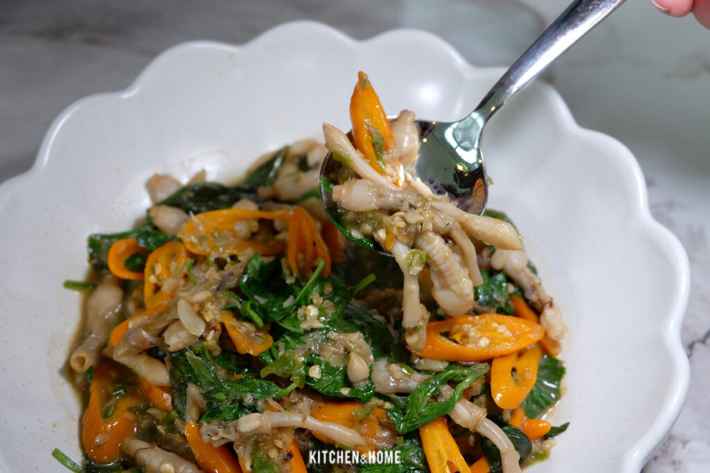 ปลาหมึกหวานผัดสะตอกะปิ: ปิดท้ายด้วยความเผ็ดร้อนและกลิ่นหอมเย้ายวนของกะปิอย่างดี ปลาหมึกหวานที่เนื้อเด้ง ผัดกับสะตอเม็ดอวบๆ ให้รสชาติเค็ม เผ็ด มัน และหอมกลิ่นเฉพาะตัวของสะตอที่ลงตัว คือจานที่ถ้าพลาดแล้วจะต้องเสียดาย