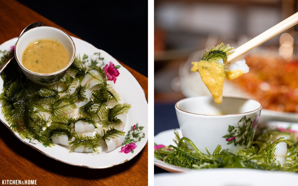 เหงียนปลาทราย เมนูพื้นบ้านที่เชฟปรับใหม่ให้อร่อยมากยิ่งขึ้น โดยลอกหนังปลาที่เหนียวออก และปรับน้ำจิ้มด้วยการเพิ่มรสเผ็ดและเปรี้ยวเข้าไป เป็นน้ำจิ้มถั่วตอย (คล้ายถั่วตัดภาคกลางที่บดละเอียด) เสิร์ฟคู่กับสาหร่ายขนนก ให้อารมณ์เหมือนกินซาชิมิแบบญี่ปุ่น