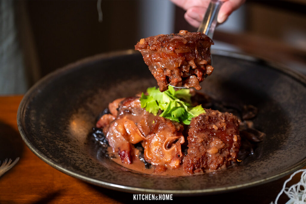 เคาหยก หมูย่าง แม้ปกติจะใช้หมูสามชั้น แต่ที่นี่ใช้หมูย่าง ซึ่งช่วยลดขั้นตอนการตุ๋นลงได้มาก ทำให้ได้รสชาติที่เข้มข้น นุ่ม และหอมกลิ่นย่าง ชิ้นส่วนที่ทำเมนูนี้แล้วอร่อยมากเป็นพิเศษได้แก่ แก้มหมู ใบหู และลิ้น