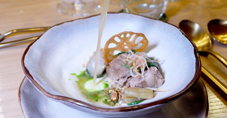 เนื้อปลาเก๋าต้มเผือก เมนูผสมผสานสไตล์จีน รสชาตินัวๆ กินง่าย เนื้อปลานำมาหั่นเป็นชิ้นพอคำ มีเผือก เห็ดหอม เนื้อไก่ อัดแน่นด้วยต้นหอม คื่นช่าย พริกเพิ่มความเผ็ดร้อนด้วยพริกไทย กินกับข้าวหรือซดเล่นๆ เป็นอีกหนึ่งเมนูที่เราอยากแนะนำ