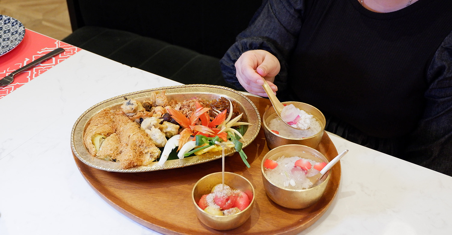เชฟกอล์ฟบอกว่าเคยกินเมนูข้าวแช่มาตั้งแต่เด็กๆ แล้วจดจำรสชาติมาปรุงให้เป็นสูตรของตัวเองที่ไม่หวานมาก ทุกอย่างมีรสที่พอดี ไม่อ่อน ไม่เค็ม กินได้เรื่อยๆ เป็นรสที่กลมกล่อม