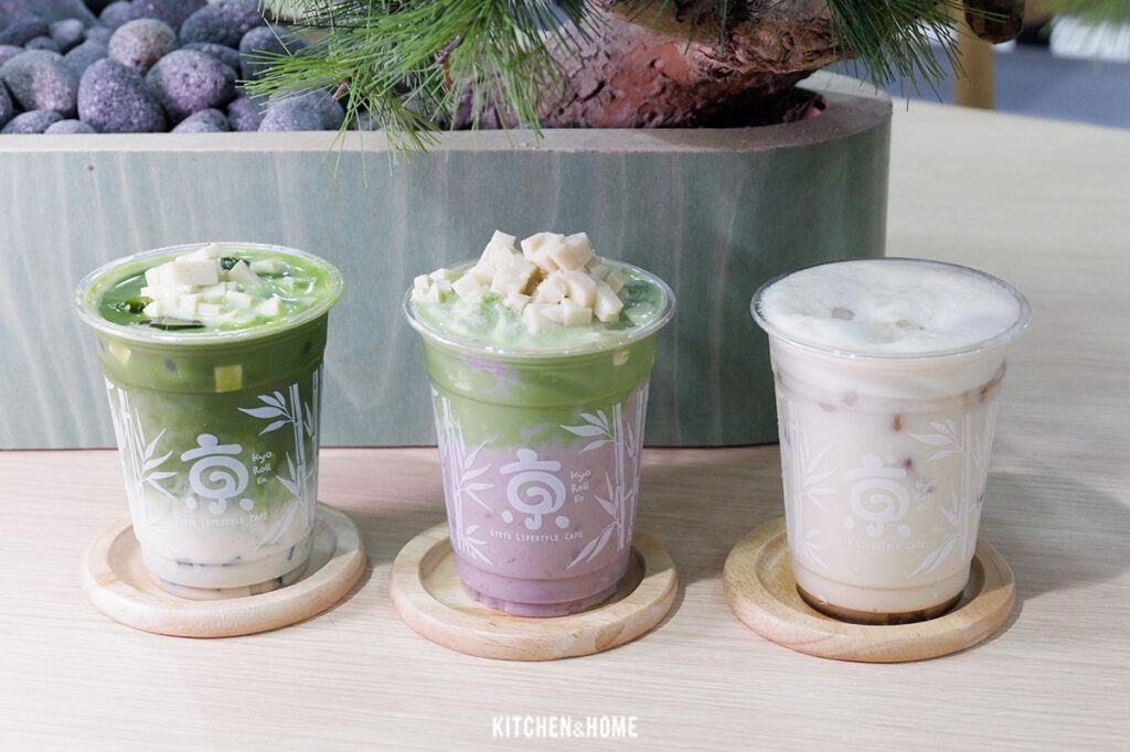 ปิดท้ายด้วยเครื่องดื่ม มัทฉะโทนิวลาเต้ สดชื่นกับอูจิมัทฉะแท้ 100 เปอร์เซ็นต์ผสมผสานกับน้ำเต้าหู้จาก Tofusan ด้านบนทอปด้วยมัทฉะและคันเต็นน้ำเต้าหู้ให้ได้เคี้ยวเพลินๆ มัทฉะทาโร่ฟรอสต์ มัทฉะปั่นผสมเผือกกวนกินคู่กับทาโร่บอล และคินาโกะโทนิวลาเต้ ลาเต้คินาโกะ ผงถั่วเหลืองคั่วสุดหอมจากเกียวโตผสมน้ำเต้าหู้และทอปด้านบนด้วยทาโร่บอล เป็นอีกหนึ่งทางเลือกสำหรับคนรักเครื่องดื่มสุขภาพ