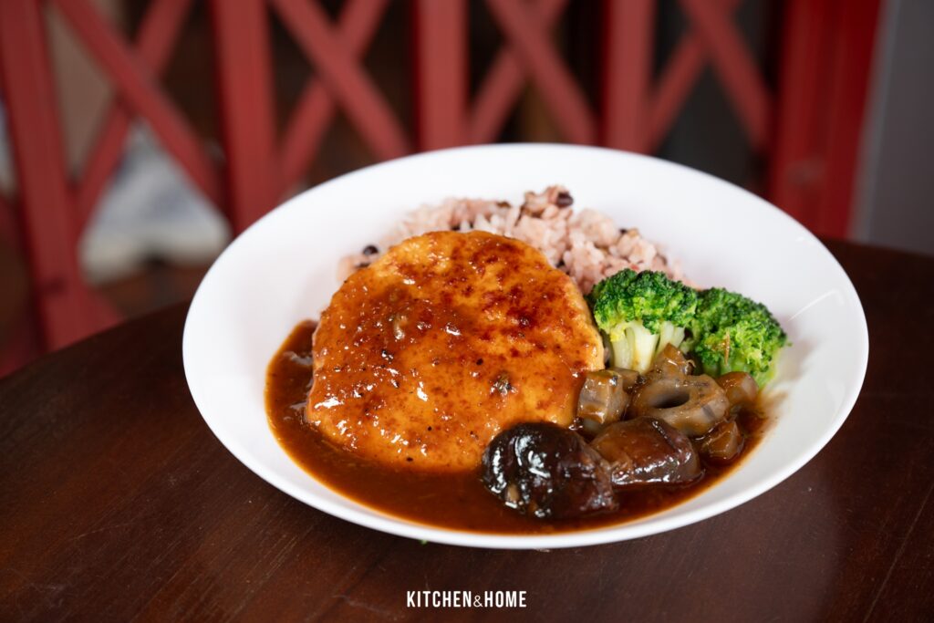 เชฟนายหยิบเอาคอมฟอร์ตฟู้ดที่เราคุ้นเคยมาปรุงอย่างพิถีพิถัน นอกจากคำนึงถึงเรื่องสุขภาพแล้วยังให้ความสำคัญกับเรื่องรสชาติ กินแล้วต้องรู้สึกอร่อย! โดยคัดสรรวัตถุดิบที่ดีมีคุณภาพจากท้องถิ่นไทยมาครีเอตเมนูต่างๆ ของร้านไม่ว่าจะเป็น ขนมจีนน้ำยำนัตโตะน้ำพริกน้ำย้อย เชฟนายเลือกใช้ขนมจีนข้าวกล้องและปลาทูของไทย ซึ่งมีโอเมกา-3 สูงเทียบเท่าปลาทะเลนำเข้าบางชนิด เสิร์ฟพร้อมน้ำยำรสแซ่บที่มีส่วนผสมของนัตโตะ มีสารนัตโตะไคเนส ช่วยป้องกันโรคหลอดเลือดและหัวใจ กินคู่กับผักหลากหลายชนิด ท็อปด้วยน้ำพริกน้ำย้อยมะแขว่น ซึ่งน้ำมันหอมระเหยในมะแขว่นมีสารต้านอนุมูลอิสระสูง ช่วยต้านมะเร็งได้ดี ไปต่อกันที่ ข้าวธัญพืชแฮมเบิร์กซอสกุ๊กช็อป เมนูเน้นโปรตีนจากเนื้ออกไก่สับ ผ่านกรรมวิธีที่ทำให้เนื้อนุ่ม ไม่แข็งกระด้าง เสิร์ฟกับข้าว กข43 หุงรวมกันกับธัญพืชอย่างถั่วเขียวและถั่วแดง เพื่อช่วยเพิ่มใยอาหาร ราดด้วยซอสกุ๊กช็อปรสเปรี้ยว เค็ม หวาน โดยเชฟนายนำมะเขือเทศมาทำเป็นซอสสตูฝรั่งผสานกับสไตล์จีน หอมกลิ่นสามเกลอซึ่งมีพริกไทยดำเป็นส่วนผสม ช่วยให้ร่างกายดูดซึมสารออกฤทธิ์ต่างๆ ได้ดีมากขึ้น ยกให้เป็นหนึ่งในเมนูอร่อยดีมีประโยชน์ (สุดๆ)
