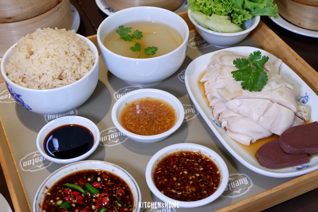 อีกหนึ่งไฮไลท์ซึ่งเป็นเมนูในตำนานที่มาแล้วห้ามพลาดคือ “ข้าวมันไก่มณเฑียร” เจ้าของรางวัล บิบ กูร์มองด์จากมิชลินไกด์ ข้าวมันหอมกรุ่น เสิร์ฟมาพร้อมกับไก่เนื้อแน่นๆ นุ่มๆ ชุ่มเบาๆ ด้วยน้ำมันงา กลายเป็นคำที่ทั้งอบอุ่นและหรูหราในเวลาเดียวกัน ที่สำคัญคือ ซอส 4 แบบ ที่เสิร์ฟมาเคียงกันได้แก่ ซอสเต้าเจี้ยวเข้มข้น, ซอสขิงหอมสดชื่น, พริกซอยเผ็ดจี๊ด และซีอิ๊วดำหวานละมุน แต่ละแบบสามารถพลิกบุคลิกของข้าวมันไก่จานนี้ให้แตกต่างกันไปทุกคำ นี่จึงเป็นอีกเหตุผลว่าทำไมถึงไม่เคยเบื่อข้าวมันไก่ของที่นี่ แม้จะกินบ่อยแค่ไหนก็ตาม