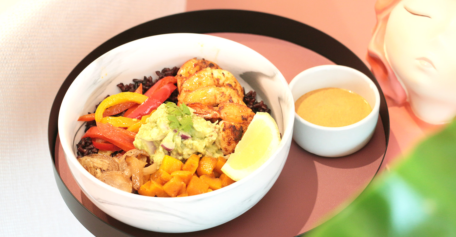 Mexican Grilled Shrimp,Guacamole, Yoghurt Garlic Sauce (380 บาท)