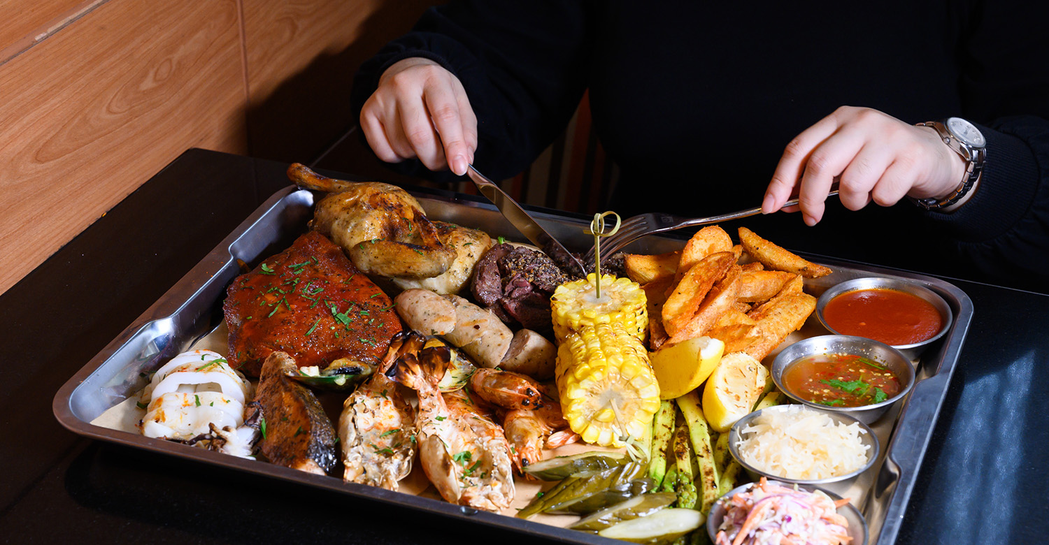 โดยในเซ็ทเมนูประกอบไปด้วย กุ้งแม่น้ำเผา หอยแมลงภู่นิวซีแลนด์อบ ปลากระพงย่าง หมึกย่าง แซลมอนย่าง ไก่อบสูตรพิเศษ ซี่โครงหมูบาร์บีคิว เนื้อย่างชุ่มฉ่ำ ไส้กรอกย่าง เสิร์ฟคู่กับน้ำจิ้มสูตรดั้งเดิมและน้ำจิ้มซีฟู้ดแบบไทยๆ กินคู่กับมันฝรั่ง เฟรนซ์ฟรายส์ หรือผักย่าง