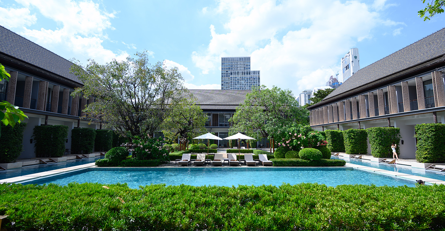นอกจากนี้ห้องพักทุกห้องยังถูกออกแบบให้หันหน้าสู่พื้นที่เปิดโล่งใจกลางโรงแรม ที่ประดับด้วยสวนหย่อมให้ความรู้สึกผ่อนคลาย พร้อมสระว่ายน้ำที่เชื่อมต่อห้องพักชั้นล่างทุกห้อง ยังมีการออกแบบ “ท่าน้ำ” เพื่อทอดลงสู่สระว่ายน้ำซึ่งมีแนวคิดการออกแบบมาจากวิถีชีวิตไทยในอดีตที่ผูกพันอยู่กับสายน้ำ และมีโถงทางเดินแบบ Semi-Outdoor ที่เชื่อมต่อระหว่างพื้นที่ภายในกับภายนอกได้อย่างลงตัว ให้ความรู้สึกใกล้ชิดกับธรรมชาติยิ่งขึ้น