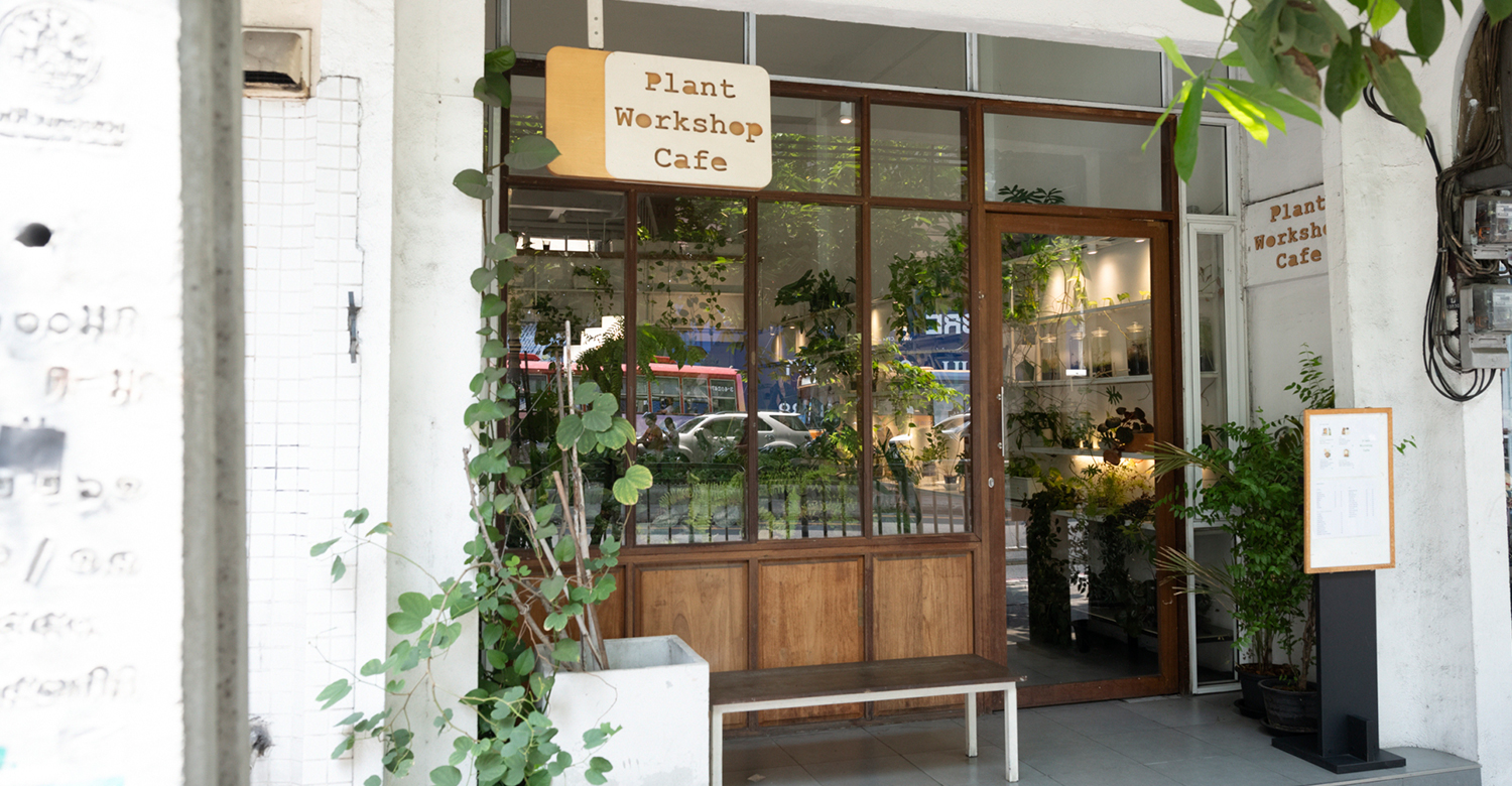 Plant Workshop Café ไม่ได้เป็นร้านกาแฟหรือร้านขายต้นไม้แต่อย่างใด ทว่าเป็น Co-Working Space ย่านราชเทวีที่รายล้อมไปด้วยต้นไม้หลากหลายชนิด ซึ่งแรกเริ่มเดิมทีคุณต้อม-กฤษฎา พลทรัพย์ และคุณออม-ดร. มนสินี อรรถวานิช ตั้งใจปลูกไว้เพื่อเพิ่มพื้นที่สีเขียวให้กับบ้านและออฟฟิศของตัวเอง ก่อนจะเปิดให้ทุกคนเข้ามาใช้สเปซนั่งทำงาน อ่านหนังสือ หรือจะแวะมานั่งเล่นพักผ่อนหย่อนใจ พูดคุยแลกเปลี่ยนเรื่องต้นไม้ที่นี่ก็ยินดีต้อนรับ
