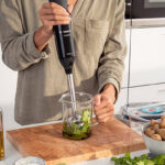 เครื่องแกงแกงเลียง กะปิเจ หอมแดง กระชาย และ เห็ด นำไปปั่นกับน้ำซุปผัก