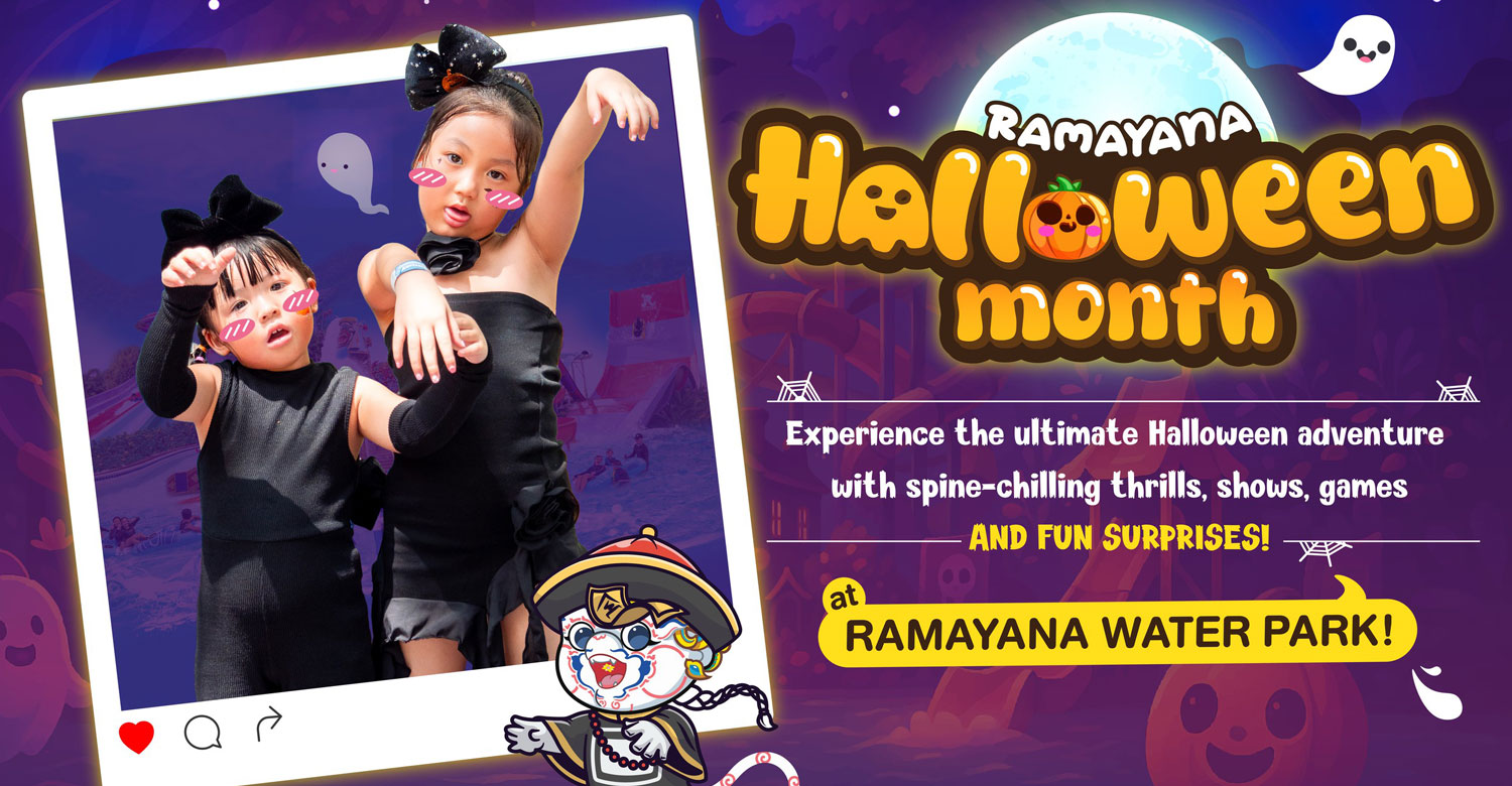 เทศกาลฮาโลวีนปีนี้ ห้ามพลาด! ชวนครอบครัว และเพื่อนๆ มาสัมผัสประสบการณ์ความหลอน ในรูปแบบใหม่ที่ ‘สวนน้ำรามายณะ พัทยา’ เปิดให้บริการตั้งแต่เวลา 11.00 – 18.00 น. (ปิดบริการทุกวันพุธ) โดยสามารถจองบัตรเข้าสวนน้ำได้ที่ https://ramayanawp.com/42FXBAG พร้อมติดตาม รายละเอียดกิจกรรม และโปรโมชั่นได้ทาง https://www.facebook.com/RamayanaWaterParkThailand และ www.ramayanawaterpark.com หรือสอบถามข้อมูลเพิ่มเติม โทร. 033-005-929