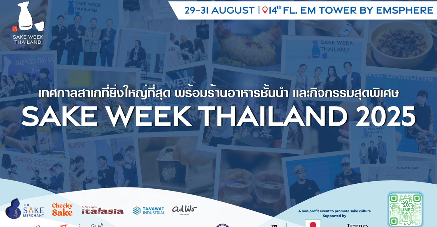 เทศกาลสาเกที่ยิ่งใหญ่ที่สุดของประเทศไทยกำลังจะกลับมาอีกครั้งในปีนี้ เมื่อ Sake Week Thailand 2025 เตรียมเปิดประตูต้อนรับผู้หลงใหลในสาเกและอาหารไฟน์ไดนิ่ง ระหว่างวันที่ 29–31 สิงหาคม 2568 เวลา 10.00–22.00 น. ณ ชั้น 14 (EM SKYE) EMTower, EMSPHERE ใจกลางกรุงเทพฯ