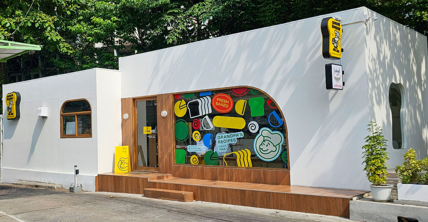 ร้านยังคงไว้ซึ่งเทคนิคและรสชาติความอร่อย แต่ปรับลุคให้มีความร่วมสมัย สนุก สดใสด้วยการรีแบรนด์ใหม่พร้อมคาเฟ่ที่สุดแสนจะน่ารัก ดึงดูดทุกสายตาที่ผ่านให้เข้าไปลิ้มลอง คาเฟ่นี้ตั้งอยู่ในโซนด้านหลังตลาด อ.ต.ก. ตัวร้านเป็นบล็อกสีขาว เจาะหน้าต่างเป็นโครงรูปแผ่นขนมปังน่ารัก และมีมีโซนเอาต์ดอร์ด้วย