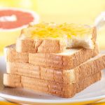 5. น้ำขนมปังไปปิ้งจนกรอบเล็กน้อย แล้วนำกระเทียมสมมาถูกบนหน้าขนมปัง