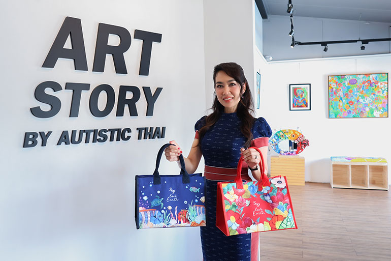 นอกจากนี้ ยังเป็นการสร้างคุณค่าแก่สังคม โดยส่งเสริมศักยภาพของน้องๆ ออทิสติก ด้วยการคัดสรรผลงานศิลปะจากศิลปินออทิสติก มูลนิธิออทิสติกไทย สำหรับสกรีนเป็นลายกระเป๋าผ้า 2 ลาย คือ ลายทะเล ผลงานของน้องกานต์ และ ลายดอกไม้ ผลงานของน้องอั่งเปา เพื่อสร้างความตระหนักถึงความสำคัญของการรักษาสมดุลทางธรรมชาติ นำมาสู่ความสวยงามของระบบนิเวศ เหมาะสำหรับเป็นของขวัญอันทรงคุณค่า เพื่อส่งต่อความรักและความปรารถนาดีให้แก่กันในช่วงเทศกาลปีใหม่นี้ อีกทั้งเป็นการเชิญชวนลูกค้าเลือกใช้กระเป๋าผ้าที่สามารถนำกลับมาใช้ซ้ำได้ทดแทนการใช้ถุงพลาสติกแบบใช้แล้วทิ้ง (Single-use plastic) ช่วยลดปัญหาขยะพลาสติกที่ส่งผลกระทบต่อสิ่งแวดล้อม”