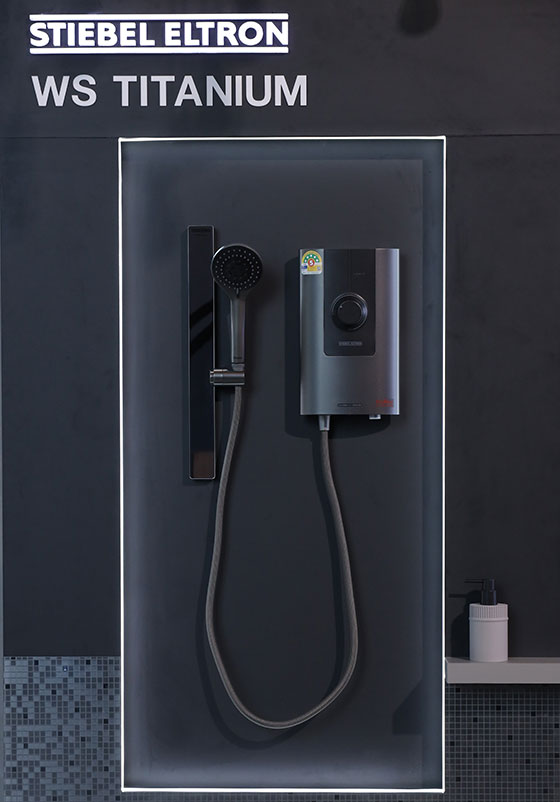 - เครื่องทำน้ำอุ่นรุ่น WS Titanium มาพร้อมหัวฝักบัว 5-in-1 และสายฝักบัวไนลอนถักคุณภาพสูง มาพร้อมฟังก์ชัน Anti-Twist ป้องกันการบิดงอ พร้อมราวสไลด์ปรับระดับได้ ผลิตจากกระจกนิรภัยที่สวยงามและทนทาน เหมาะสำหรับการใช้งานในชีวิตประจำวัน อาทิ การโกนหนวดหรือปรนิบัติผิวกาย มอบความพรีเมียมเหนือระดับทุกครั้งที่ใช้งาน จำหน่ายในราคา 5,690 บาท สำหรับขนาด 3,500 วัตต์ และราคา 5,990 บาท สำหรับขนาด 4,500 วัตต์