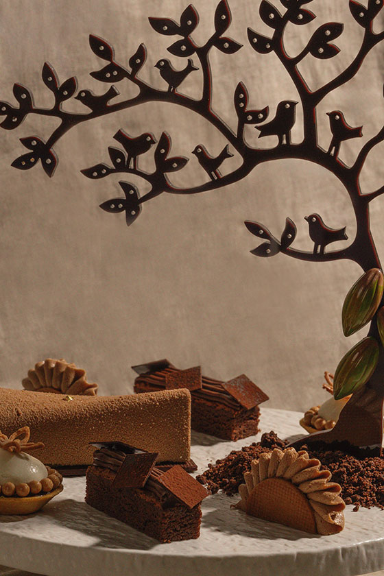 เรื่องราวของอาร์ฟเตอร์นูนทีเซ็ตใหม่ล่าสุด ‘Sweet Surrender’ ที่เชฟได้รวบรวมความหลากหลายทางรสชาติและสัมผัสของช็อกโกแลตจากทั่วทุกมุมโลกมาไว้ด้วยกัน นำเสนอความต่อเนื่องของเรื่องราวที่ไม่มีที่สิ้นสุดตั้งแต่ต้นกำเนิด จนกลายเป็นเมล็ดโกโก้และแปรเปลี่ยนสู่ขนมหวานรสเลิศบนจาน การนำเสนอที่ให้คุณได้เด็ดช็อกโกแลตพราลีนจาก ‘ต้นโกโก้’ จำลองด้วยตัวเอง ราวกับได้ร่วมเป็นส่วนหนึ่งของเส้นทางมหัศจรรย์นี้