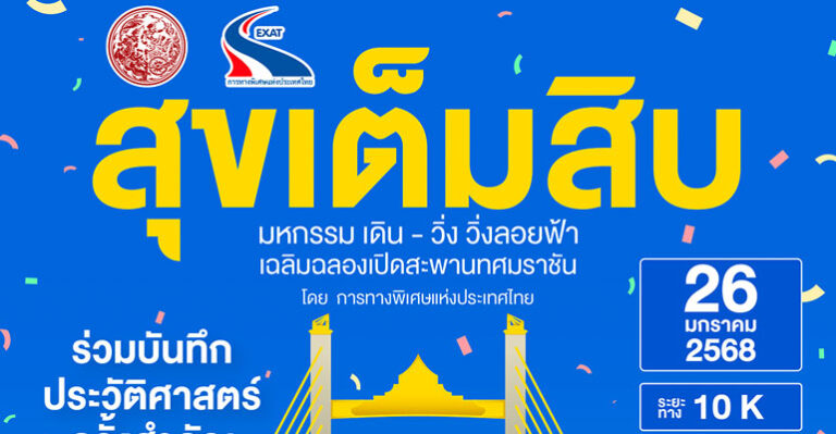 News กทพ. เชิญชวนร่วม ‘มหกรรมสุขเต็มสิบ’ กิจกรรมเดิน-วิ่ง บันทึกประวัติศาสตร์ บนสะพานทศมราชัน สะพานแห่งความภาคภูมิใจของไทย 8 มกราคม 2025
