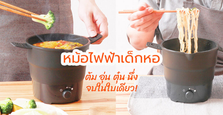หม้อไฟฟ้าขนาดเล็ก หม้อเดียวครบ ต้ม อุ่น ตุ๋น นึ่ง จาก Thanko