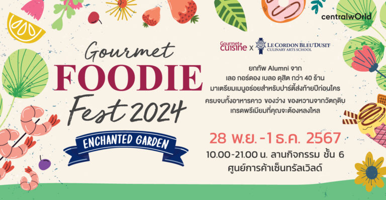 News ชวนอร่อยสุดฟิน ต้อนรับเทศกาลแห่งความสุข “Gourmet Foodie Fest 2024 Enchanted Garden” จัดเต็ม 40 ร้านดัง จากศิษย์เก่า “เลอ กอร์ดอง เบลอ ดุสิต” 21 พฤศจิกายน 2024