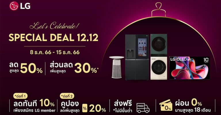 News แอลจีปล่อยหลากโปรสุดปังฉลองส่งท้ายปี ทั้งโปรลดแรง โปร 1 แถม 1 และดีลพิเศษที่ร้านค้าออนไลน์ของแอลจี 6 ธันวาคม 2023