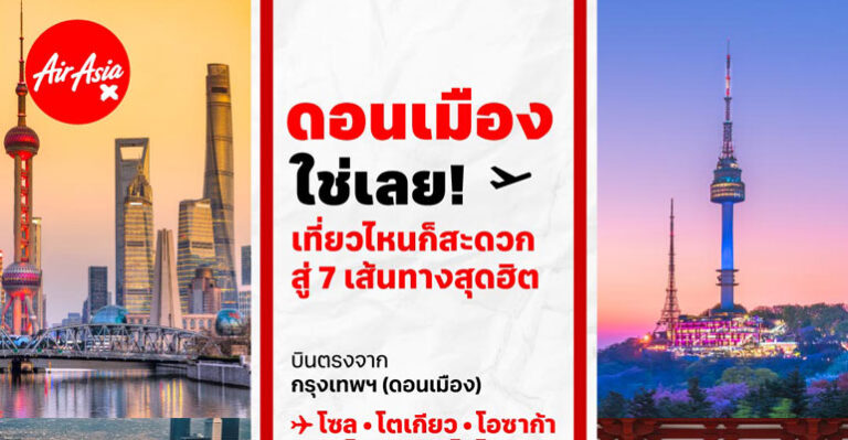 News ไทยแอร์เอเชีย เอ็กซ์ จัดโปรต้อนรับย้ายให้บริการที่ “ดอนเมือง ใช่เลย” เริ่ม 1 ตุลาคมนี้ บินสู่ 7 เส้นทาง เริ่มต้นเพียง 3,490 บาท* 13 กันยายน 2024