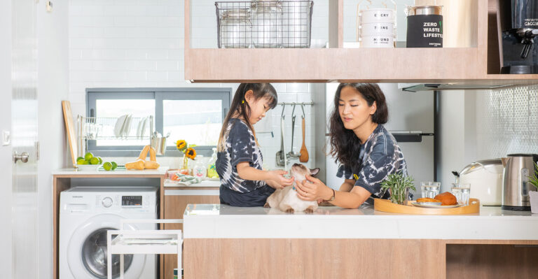 สตูดิโออพาร์ทเมนท์ที่เน้นมุมทำงาน ครัว แถมมีชิงช้าให้ลูกเล่น
