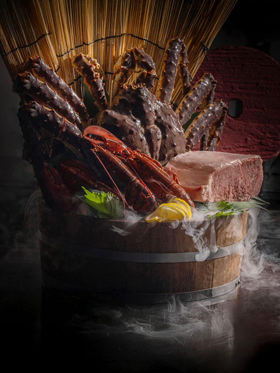 และ The King of the Sea เจ้าแห่งทะเลอย่าง Canadian Lobster กับซอสเบนิฮานาซิกเนเจอร์โดยในเซ็ทจะรวมข้าวผัดกระเทียมเสิร์ฟพร้อมวากิวหั่นเต๋า, หอยเชลล์ ฮอกไกโดย่างในซอสยูสุ, ไข่ตุ๋นสไตล์ญี่ปุ่นในซุปราชาปู รวมถึงสลัดผัก กับซุปมิโซะปู King crab ฯลฯ และเมนูของหวานฟินาเล่ ที่มาพร้อมโชว์ไฟลุกปิดท้ายมื้อสุดพิเศษนี้กับ Teppanyaki Banana Flambee เสิร์ฟคู่ไอศกรีมคาราเมล นอกจากนี้ ยังมีเมนู A-la-cart ให้เลือกมากมาย อาทิ ซูชิ ซาซิมิ ซิกเนเจอร์โรล เมนูอาหารประเภททอด เช่น เทมปุระเซ็ท ฯลฯ สำหรับ รวมถึงเครื่องดื่มสาเก ค็อกเทล ฯลฯ ให้คุณได้เพลิดเพลินอิ่มอร่อยได้อย่างเต็มที่เพื่อเติมเต็มช่วงเวลาแห่งการเฉลิมฉลองอีกด้วย