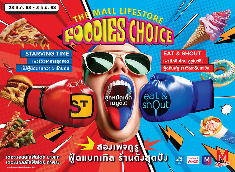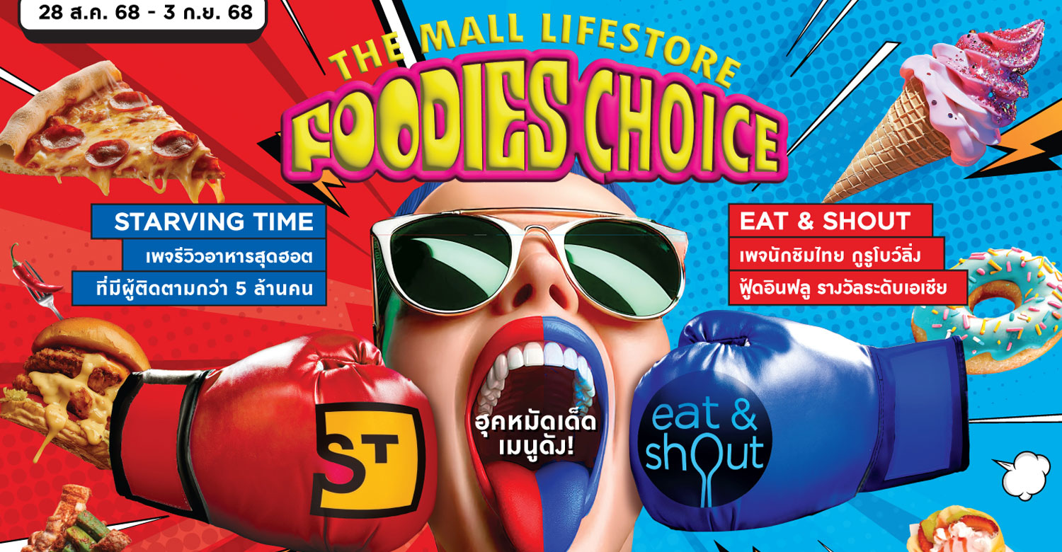 เดอะมอลล์ไลฟ์สโตร์ ร่วมกับ 2 เพจรีวิวชื่อดัง “STARVING TIME” และ “EAT & SHOUT” ชวนสายกินร่วมเปิดประสบการณ์สุดฟินในงาน “THE MALL LIFESTORE FOODIES CHOICE 2025” พบการรวมตัวของร้านเด็ดจาก 2 เพจรีวิวชื่อดัง ที่จะมาประชันความอร่อยทั้งอาหารคาวและอาหารหวานกันแบบหมัดต่อหมัด ในธีม “FOOD BATTLE สายจัดจ้านโทนร้อน VS สายหวานโทนเย็น” ทั้งร้านเด็ด ฮอตฮิต ติดรีวิว และ ร้านในกระแส เสิร์ฟสาย Content ให้ได้ช้อป ชิม แชะ&ชิค ถ่ายรูปอวดเพื่อนได้แบบเริ่ดๆ ระหว่างวันที่ 28 สิงหาคม – 3 กันยายน 2568 ที่ เดอะมอลล์ไลฟ์สโตร์ บางแค และท่าพระ