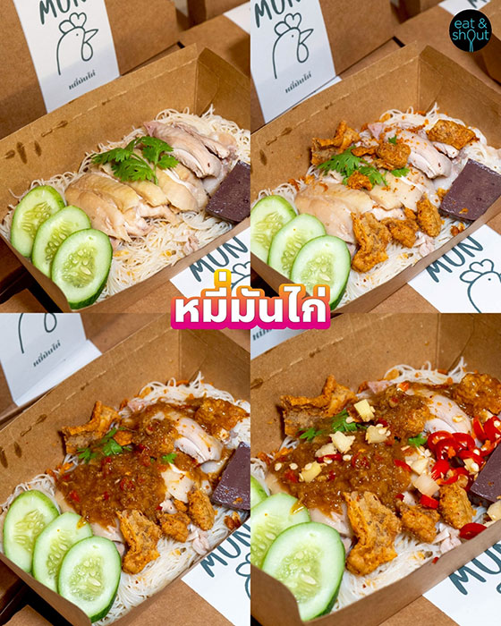 4. หมี่มันไก่ (MEE MUN GAI) หมี่มันไก่ ทางเลือกใหม่ของข้าวมันไก่ เสิร์ฟพร้อมไก่นุ่มๆ และน้ำจิ้มข้าวมันไก่สูตรเด็ด80ปี อร่อยแบบข้าวมันไก่ในสไตล์เส้นหมี่
