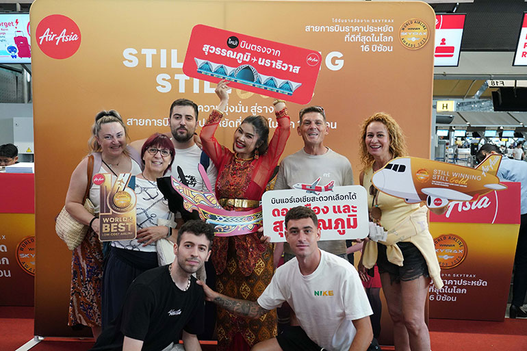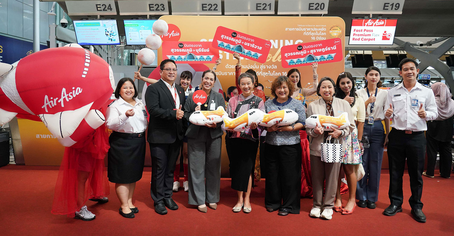 สายการบินแอร์เอเชีย ตอกย้ำเส้นทางบินในประเทศมากที่สุดจากสุวรรณภูมิ เดินหน้าบินปฐมฤกษ์อีก 3 เส้นทางใหม่ จากสุวรรณภูมิสู่ สุราษฎร์ธานี 1 เที่ยวบินต่อวัน นราธิวาส 1 เที่ยวบินต่อวัน และบุรีรัมย์ 3 เที่ยวบินต่อสัปดาห์ (ทุกวันอังคาร พฤหัสบดี เเละเสาร์) โดยจัดกิจกรรมต้อนรับและเเจกของที่ระลึกผู้โดยสารเที่ยวบินปฐมฤกษ์อย่างเป็นกันเอง ทั้งที่ท่าอากาศยานสุวรรณภูมิ และเที่ยวบินขาเข้าที่สุราษฎร์ธานี นราธิวาส เเละบุรีรัมย์
