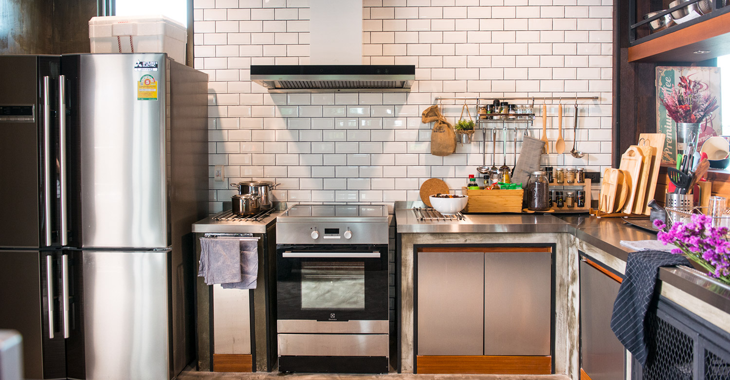 - การออกแบบอุปกรณ์ไฟฟ้าให้สัมพันธ์กัน โดยไฟฟ้าที่เลือกใช้ควรมีขนาดพอดีและต่อเนื่องกันกับส่วนอื่นๆของครัว การมีผิววัสดุที่เสมอกันหมด หรือเป็นหนึ่งเดียวกับชุดครัวยิ่งทำให้ภาพรวมของห้องครัวดูสวยไปด้วยเลยล่ะ