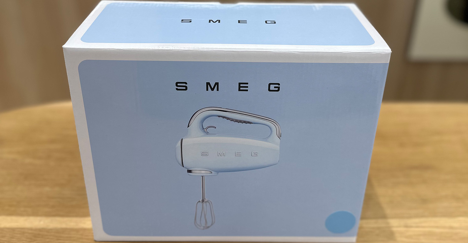 ชวนมาเปิดกล่องเครื่องผสมอาหารมือถือ (Hand Mixer) รุ่น HMF01PBEU ของ Smeg แบรนด์ชื่อดังจากอิตาลี เครื่องใช้ไฟฟ้าในครัวขนาดเล็กที่ช่วยอำนวยความสะดวกในชีวิตประจำวัน มาพร้อมกับความสวยงามที่โดดเด่นของสีฟ้าหวานละมุน ในสไตล์ยุค 50 แบบเรโทร และยังมีสีอื่นๆ ให้เลือกอีกหลากหลายตามความชอบ