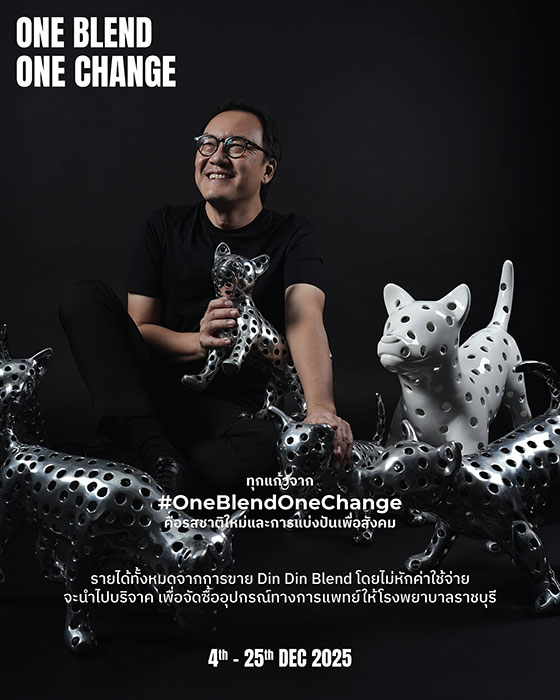 นอกเหนือจากนิทรรศการที่ BEANS Songwat และคุณวศินบุรี ยังได้ร่วมกันสร้างสรรค์โปรเจกต์พิเศษ “One Blend One Change” ผ่านการคัดสรรและเบลนด์เมล็ดกาแฟรสชาติใหม่ในชื่อ “DINDIN” (ดินดิน) ซึ่งได้รับแรงบันดาลใจจาก “ดิน” จุดกำเนิดของทั้งกาแฟและงานเซรามิก โดยจัดจำหน่ายที่ BEANS ทุกสาขา ตั้งแต่วัน 4 – 25 ธันวาคม 2568 เท่านั้น และรายได้จากการจำหน่ายเมล็ดกาแฟชุดนี้จะถูกนำไปบริจาคให้กับ โรงพยาบาลราชบุรี ซึ่งเป็นบ้านเกิดของไอ้จุด เพื่อส่งต่อความช่วยเหลือและสร้างการเปลี่ยนแปลงที่ดีกลับคืนสู่สังคม
